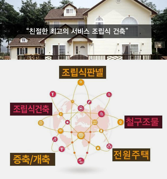 전북 지역에서 조립식건축, 판넬, 철구조물, H빔공사, 증축, 개축, 전원주택 울타리공사, 건축 리모델링 공사 시공을 진행해드리고 있습니다.
